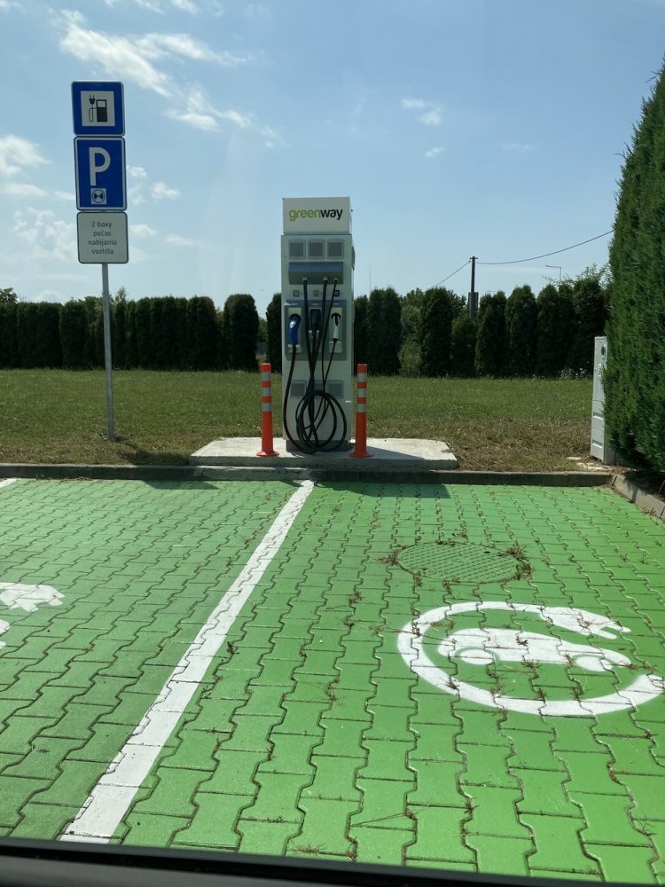 Nová DC nabíjačka v Novom Meste nad Váhom na parkovisku pred predajňou Škoda - PNA "Prvý novomestský autoservis". Areál nie je oplotený, bez rampy, prístup 24/7.